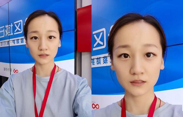 從實際的自拍樣張來看,在照片放大后,小姐姐的眉毛包括睫毛都清晰可見,并且整體美顏效果顯得十分自然,眼睛也頗為有神,整體的效果非常出眾。