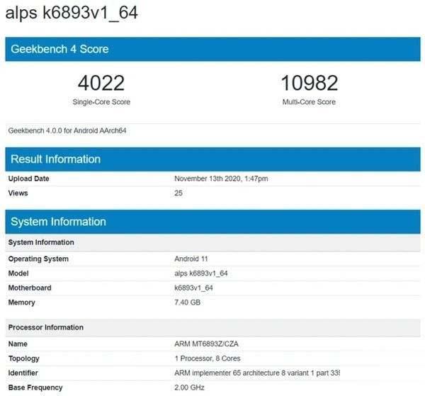 根據之前GeekBench跑分網站中公布的數據顯示,天璣1200的單核分數為4022,多核分數為10982。這個成績已經超過天璣1000Plus,距離驍龍865還有一定的差距。