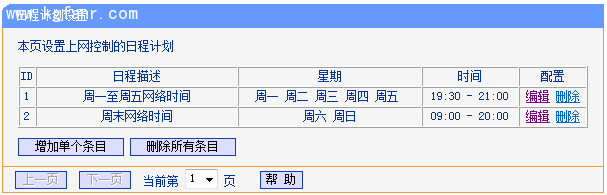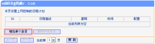 登錄路由器管理界面,在 上網控制 >> 日程計劃 中,點擊 增加單個條目。
