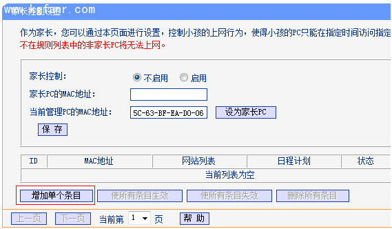 點擊 家長控制 >> 增加單個條目,如下圖: