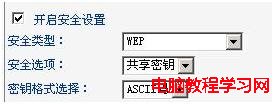 1. 無線路由器設(shè)置WEP加密,安全選項選擇的是“共享密鑰”,如下圖所示: