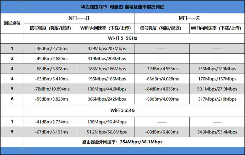 測試環境依然不變,首先來看下只有華為路由Q2S 主路由情況下的信號強度和速率情況。