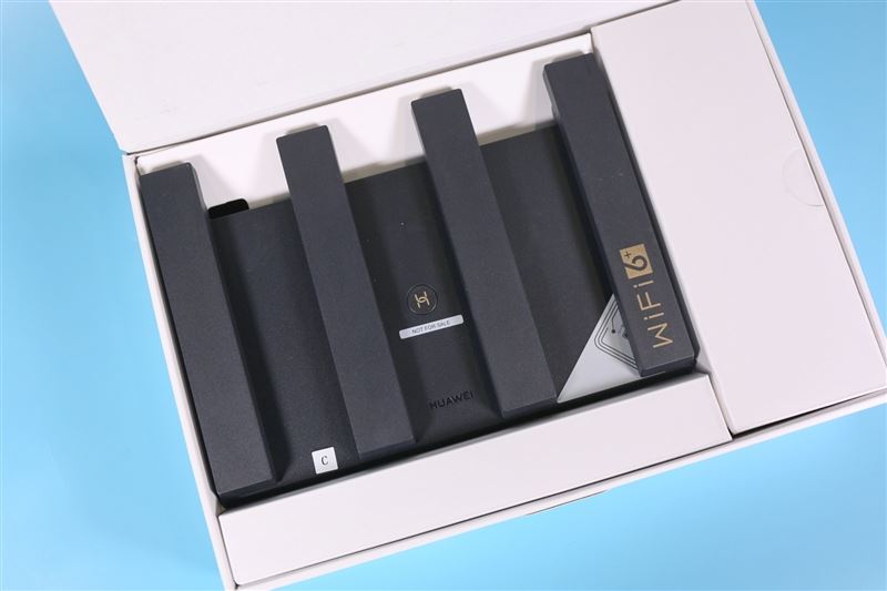打開包裝,華為路由AX3 Pro以折疊的形式收納其中。