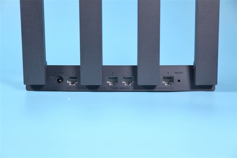 后部四個千兆WAN/LAN自適應盲插網(wǎng)口,此外還有一個電源接口和重置按鈕。網(wǎng)口部分沒有設置LED燈珠,前面板也僅有一個電源指示燈,因此只能通過軟件或管理頁面判斷網(wǎng)口是否通暢。