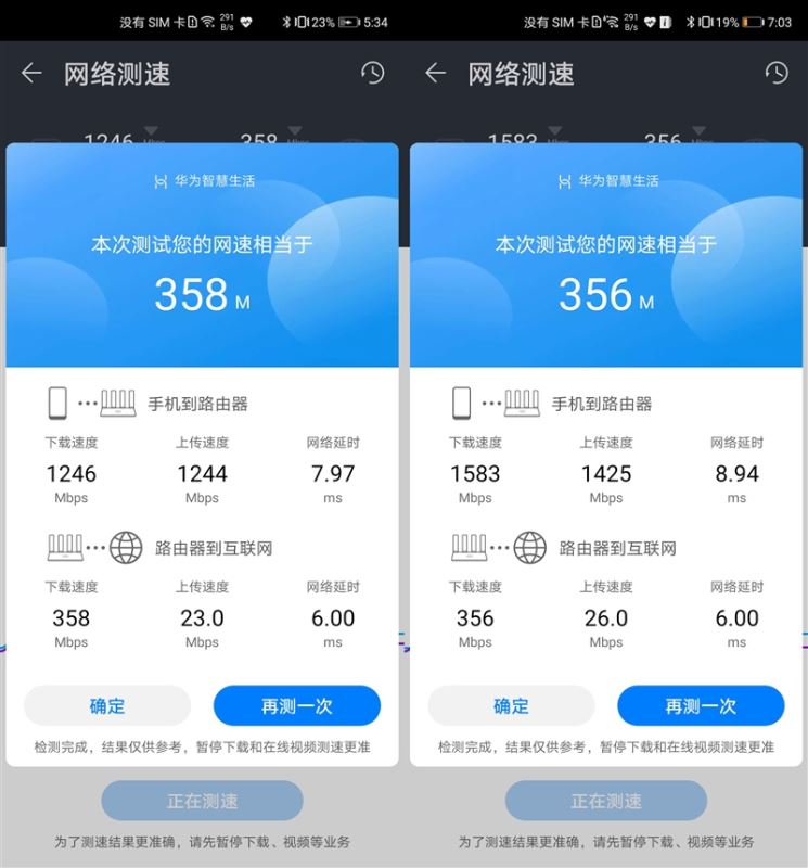考慮到華為路由AX3 Pro支持160MHz頻寬的特性,選擇了支持160MHz及以下頻寬的雙天線Wi-Fi 6手機A,以及僅支持80MHz及以下頻寬的雙天線Wi-Fi 6手機B,共同來測試華為路由AX3 Pro的表現。