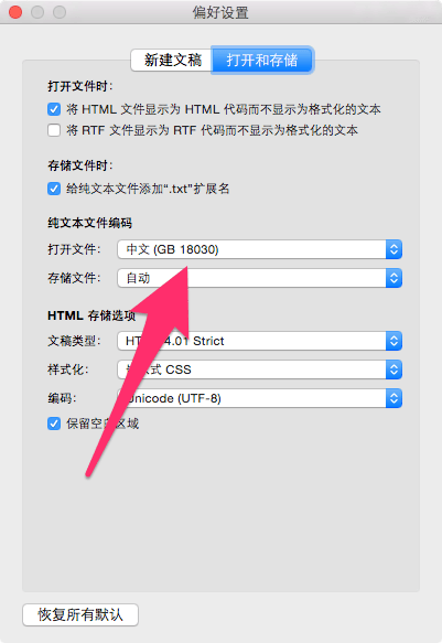 解決方法很簡單:打開「文本編輯.app」,點擊屏幕左上角菜單欄的「文本編輯」>「偏好設置…」>「打開和存儲」。選擇打開純文本文件的編碼為「中文 GBxxxx」即可。