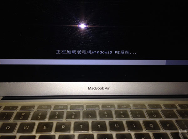 把制作好的U盤插入電腦,同樣,開機安裝option鍵,出來選項之后,選擇windows選項,此時電腦會進入讀取U盤里面的winpe系統,如下圖: