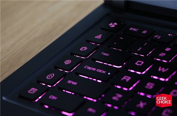 當(dāng)然,作為一款游戲本,炫彩的燈光效果也是少不了的。小米游戲本的燈效由兩部分組成,一部分是C面的鍵盤區(qū),另外一部分是機(jī)身兩側(cè)的燈帶。其中鍵盤部分,左側(cè)的五個可編程功能鍵為一個分區(qū),主鍵盤區(qū)組成另外三個分區(qū)。