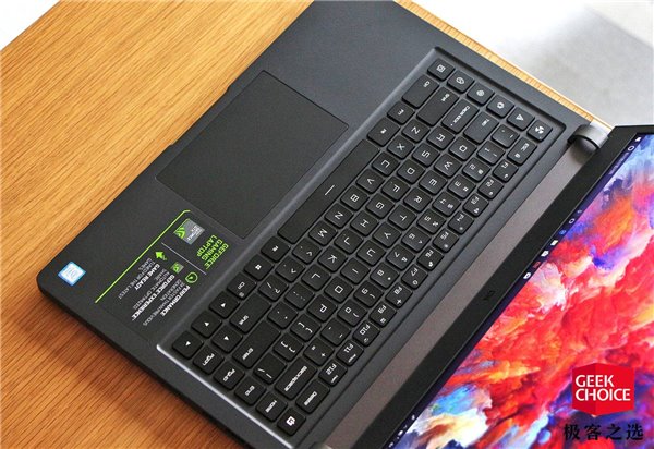 來(lái)看下C面。首先操控部分,小米游戲本的鍵盤按鍵采用了雙曲面鍵帽,鍵程為1.8mm,支持30鍵防沖突。另外從下圖中也可以看到,它的掌托面積非常大。