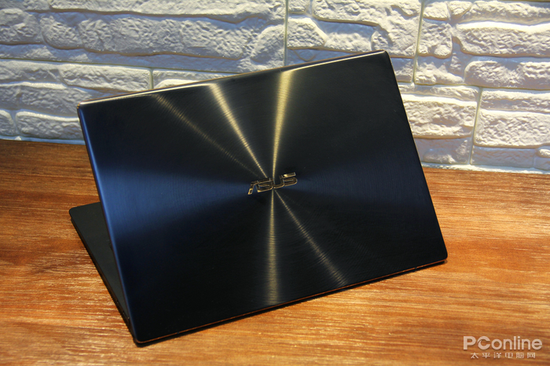 Zenbook系列的外觀一直都格外耀眼,這一點(diǎn)在華碩靈耀X的A面就得到了非常好體現(xiàn)。藍(lán)色的主色調(diào)宛如大海一樣深沉靜謐,而LOGO和邊框都輔以華麗的金色來點(diǎn)綴,宛如落日余暉灑在海面上,兩種顏色格外相稱。材質(zhì)方面,華碩靈耀X采用的是一體成型的全金屬機(jī)身,并且擁有同心圓金屬拉絲效果,質(zhì)感極其絲滑細(xì)膩,這種質(zhì)感是經(jīng)過40道拋光處理程序進(jìn)行打磨產(chǎn)生的。