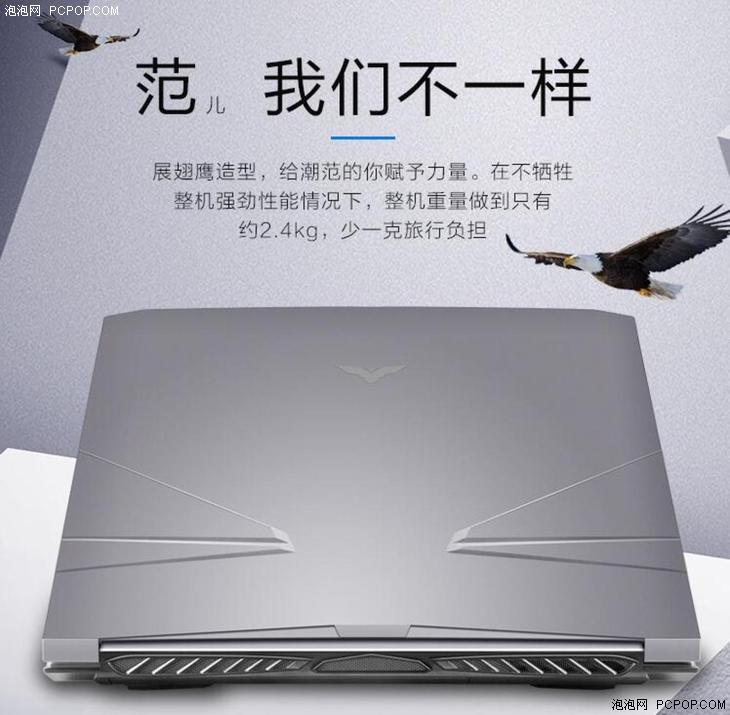 海爾凌越GT 15.6英寸的機身A面正中央也有一個LOGO,兩側(cè)加以翼狀紋理,從A面的設(shè)計來看,更多像是游戲風(fēng)格的主題。從這張圖中可以看到,筆記本采用了后置出風(fēng)的設(shè)計。筆記本重量為2.4kg,對于一款游戲本來說,有著不錯的便攜性。