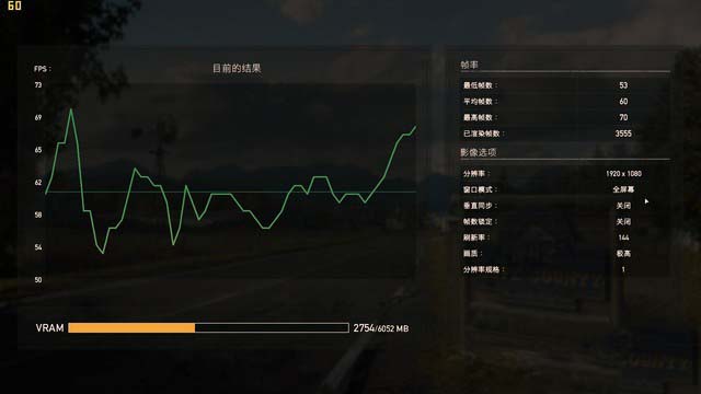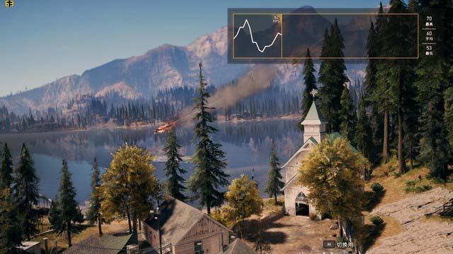 再看《孤島驚魂5》測試結果。我們同樣在最高畫質下對其進行了測試,最低幀數53fps、最高幀數70fps、平均幀數60fps,能夠達到流暢運行要求。