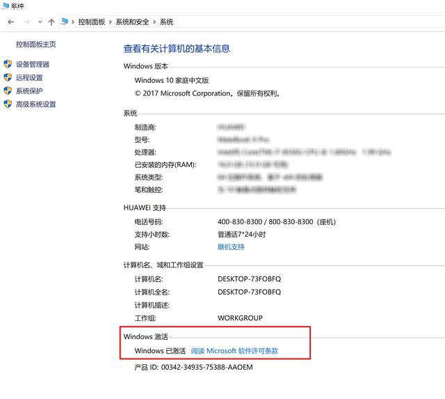 計算機首次聯網時,會自動激活 Windows 系統。您可以在任務欄搜索框中輸入“控制面板”并打開,選擇“系統和安全 > 系統”,在“Windows 激活”列下面查看,系統是否已被激活。