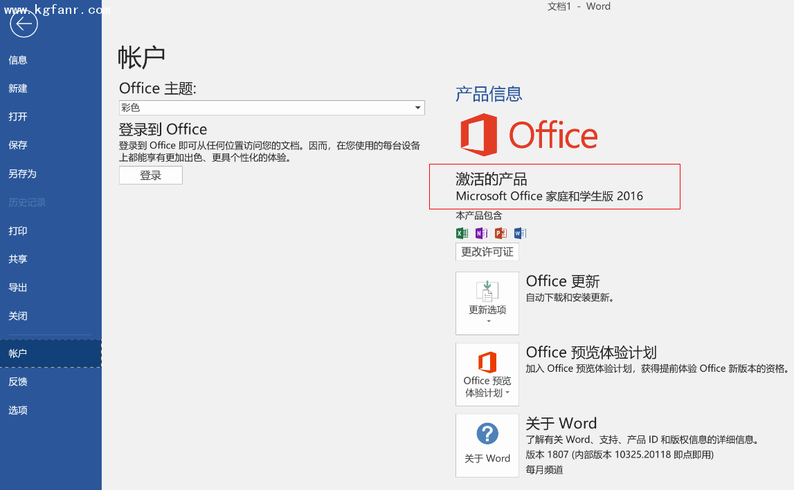 6. 至此您會發現,已經激活完成了。您可以點擊“文件 > 帳戶”,查看 Office 產品激活信息,在“激活的產品”下面哦~