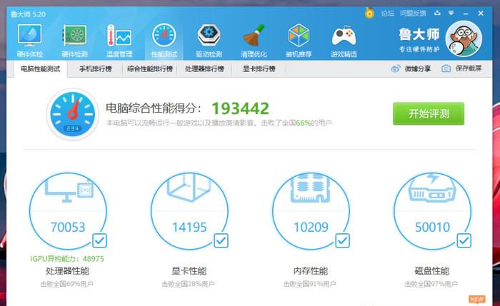 在魯大師測試中,ThinkPad X1 Yoga 2020綜合得分達到了193442的高分,其中處理器性能70053,顯卡得分14195,內存得分10209,硬盤性能得分50010。總體來看,ThinkPad X1 Yoga 2020性能不俗。