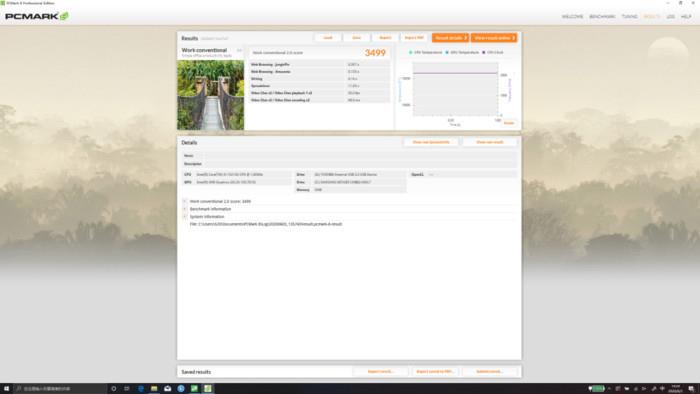 在PCMark work模式綜合測試中ThinkPad X1 Yoga 2020的綜合成績達到了3499。