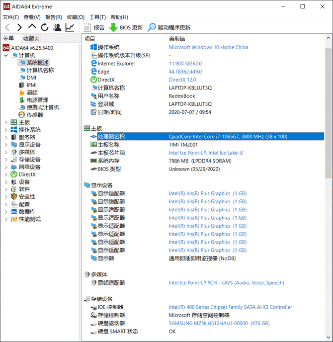 本次測(cè)試的 RedmiBook 14 Ⅱ搭載了Intel Core i7-1065G7處理器,這款處理器采用改進(jìn)的10nm工藝制造,4核心8線程,睿頻最高可至3.9GHz。相比第八代處理器有非常明顯的提升,圖形性能提升82%,視頻編輯性能提升102%。充分滿足用戶的辦公、設(shè)計(jì)、游戲、影音娛樂等多場(chǎng)景需求,這款處理器自今年推出之后,一直都是移動(dòng)便攜本中的高配之選。