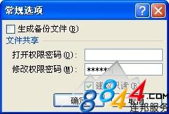 3、此時會彈出一個“常規選項”的對話框,我們可以看到有兩個密碼權限設置,如果要給表格加密我們可以在“打開權限密碼”后面輸入密碼,此后,我們打開表格時必須輸入正確的密碼才可以讀取表格。這里我們選擇“修改權限密碼”在后面輸入密碼,然后將“建議只讀”勾選,再確定,然后在彈出的“確認密碼”中重新輸入一遍剛才輸入的密碼;