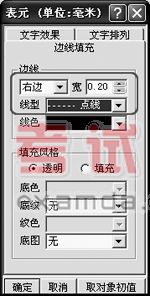 4、按下“Ctrl”鍵,選中表格的第1、3、5列,單擊工具欄的[對象屬性]按鈕,打開“表元”對話框,單擊“邊線填充”選項卡,在“邊線”中,從列表框中選擇“右邊”,將其寬修改為“0.20”,在“線型”中選擇“點線”,單擊[確定]按鈕后退出,這樣第1、3、5列的右側邊線都設置為虛線。