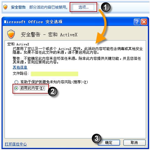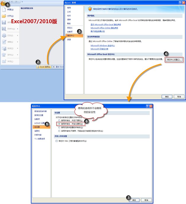 因此,在打開這些Excel程序文件之前,您需要先對您的Excel宏安全性進行設置(設置永久有效,在同一臺電腦上無需再次設置)