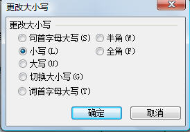 ”圖標(biāo),彈出“更改大小寫”對話框,選擇“小寫”完成第一步。