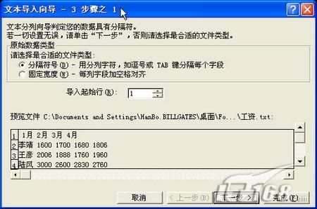 下面我們以文本文件為例來介紹如何使用Excel的數據導入功能。假設我們有一個存放工資的文本文件,其內容如圖1所示: