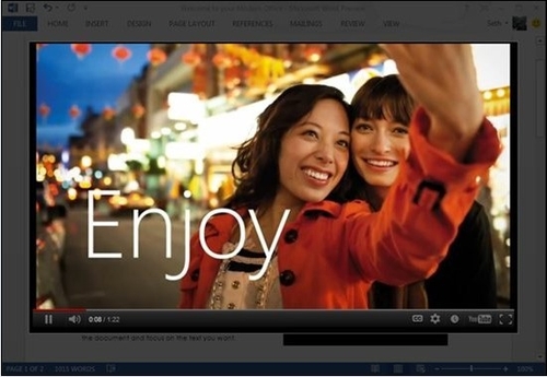 當視頻已經插入到Word中之后,我們就可以進行播放。新版Word支持Flash,Silverlight和HTML5等網頁標準,基本上能夠實現所有網絡上的視頻資源,當點擊視頻上的播放按鈕就就可以直接以懸浮窗的形式進行播放。