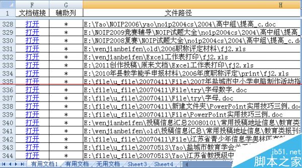 在Excel中經過上述的簡單操作之后,我們很快就能獲取指定分區的文檔目錄,所有文檔名稱都按指定的關鍵字有序排列,查找起來比較方便;每一個文檔名稱后面都包含訪問鏈接,打開也很迅速。