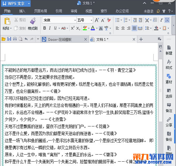 1、打開wps文字中的一篇原始文檔,用你鼠標(biāo)選中需要添加雙波浪邊框的段落,然后把鼠標(biāo)切換到功能區(qū)的“開始”選項(xiàng),點(diǎn)擊“邊框”的圖標(biāo)按鈕。