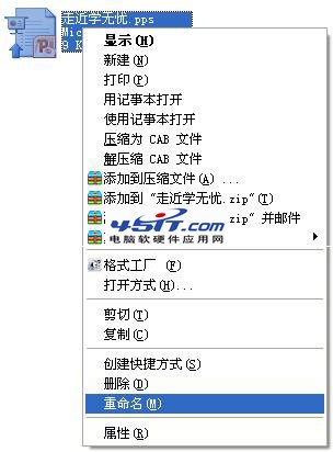 步驟三右擊要更改格式的文件選擇“文件重命名”然后把擴展名PPS改成PPT這樣接下來就可以像普通的PPT文件打開及編輯了如圖所示