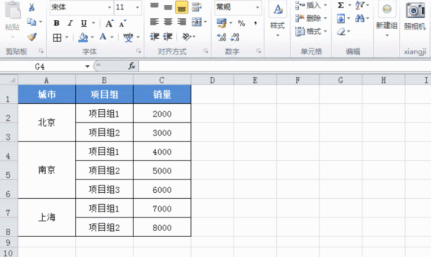 3:取消合并單元格,并填充