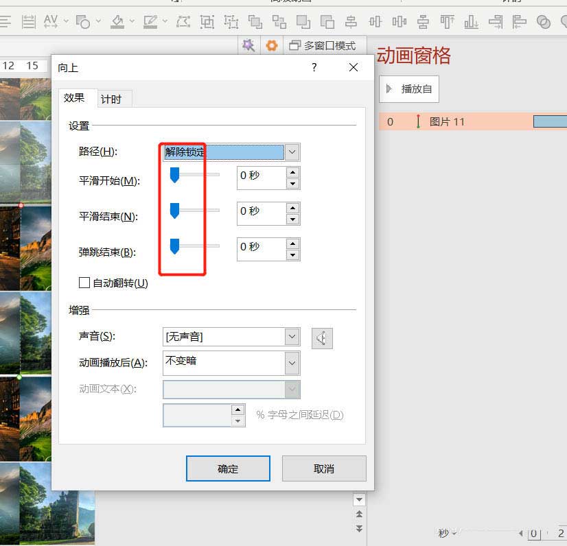 7、點擊動畫窗格-雙擊動畫-將平滑開始和結束設置為0.