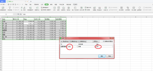 3、單擊“排序”按鈕,彈出“排序”對話框。