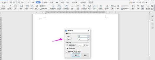 2、插入“6列;10行”表格,點擊“確定”