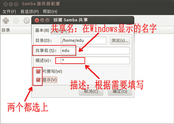 通過圖形界面對Samba進行相應的配置: