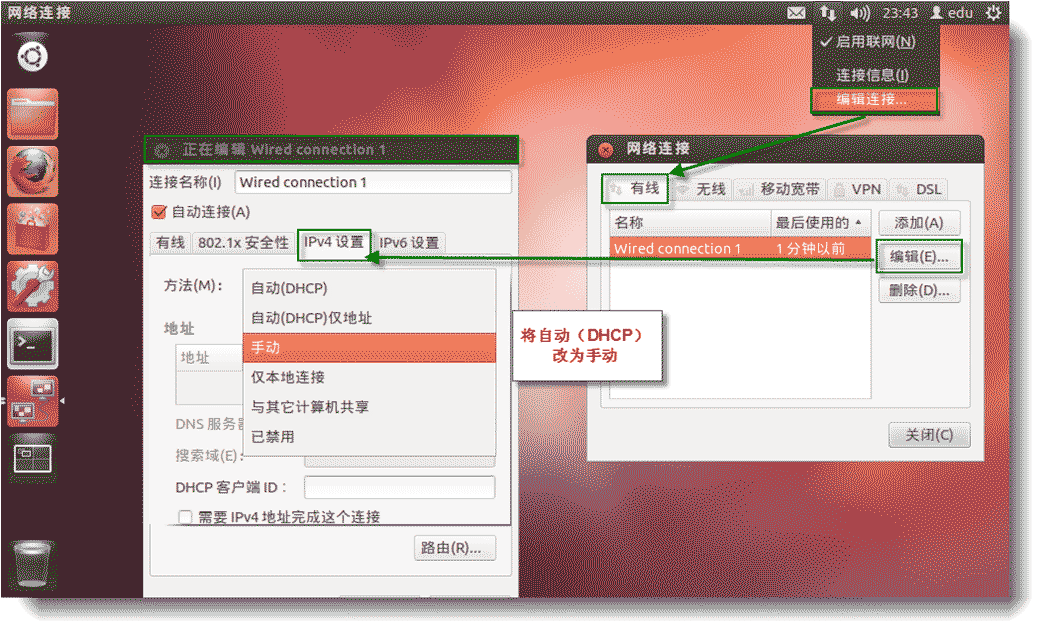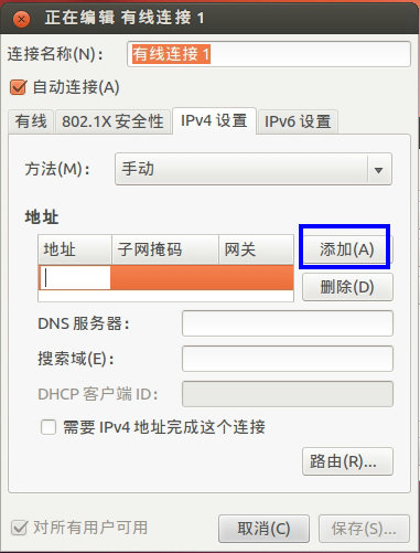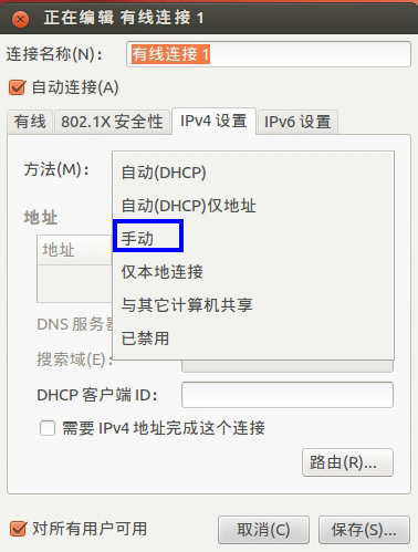 系統裝好后,源也設置好了(把以前默認的源注釋掉了,改成了幾個教育網的源,北交的源相對比較快),下來的任務就是更新系統和安裝所需的軟件,但是前提是必須可以上網,因為實驗室用的都是固定IP,所以需要將Ubuntu設置為靜態IP。方法如下: