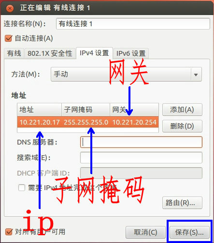 在終端里敲:sudo ifconfig eth0 10.221.20.17 netmask 255.255.255.0