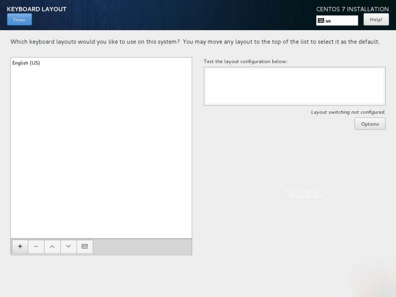 4、 點擊“鍵盤Keyboard”菜單進入鍵盤布局頁面。選擇或者添加一個鍵盤布局并點擊“完成Done”按鈕繼續。