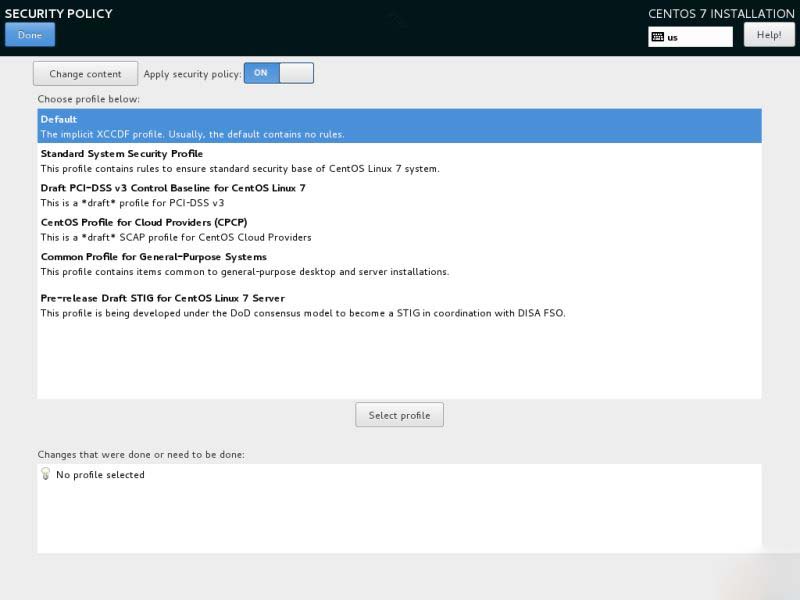 點擊選擇配置按鈕來選擇你想要的安全配置并點擊“應用安全策略Apply security policy”按鈕到 On。點擊“完成Done”按鈕后繼續安裝流程。