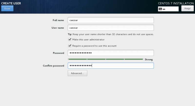 root 賬戶是每個 Linux 系統的最高管理賬戶密碼,它擁有所有的權限。設置完成后點擊完成按回到用戶設置界面。