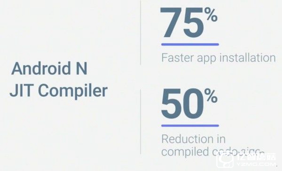 據(jù)谷歌官方PPT顯示,Android N操作系統(tǒng)代碼量減少50%、全新JIT編譯器安裝速度提升75%,并減少50%應(yīng)用程序代碼,且應(yīng)用運行速度提升幅度高達(dá)600%。