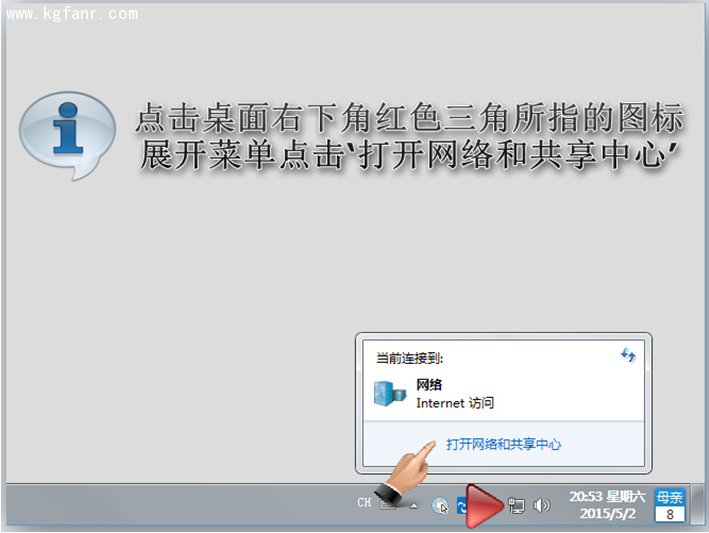 ▲在電腦桌面右下角找到小電腦圖標點擊左鍵(Windows 8及以上系統為右鍵),選擇網絡和共享中心