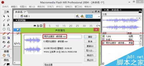 5、這時候我們在FLASH中導入轉換后的WAV格式聲音,發現這里成功了。