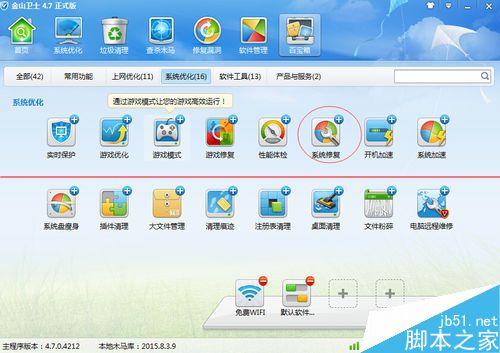 我電腦裝了i,e10.用了幾次后就藍(lán)屏,一打開就藍(lán)屏。通過(guò)金山安全衛(wèi)士修好了。1、打開金山安全衛(wèi)士,選擇編輯。2、添加系統(tǒng)修復(fù)功能。3、用系統(tǒng)修復(fù)功能先檢查一次。確定沒(méi)有其他問(wèn)題。4、用同樣...
