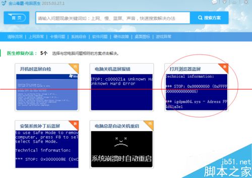 我電腦裝了i,e10.用了幾次后就藍(lán)屏,一打開就藍(lán)屏。通過(guò)金山安全衛(wèi)士修好了。