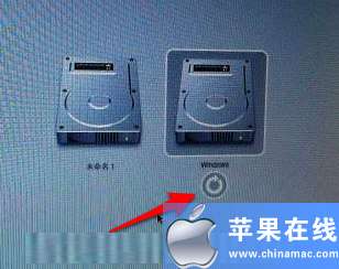 2. 在進入系統選擇界面后,如果你想把 Windows 系統當成是默認啟動系統,通過左右按鍵選鐘 Windows 系統,然后按住 Control 鍵。這是, 屏幕上選擇的圖標變成循環圓圈的圖案。