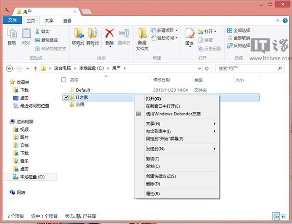 這時,在磁盤或任意文件夾上,右鍵菜單中多了一個“使用Windows Defender掃描”選項。