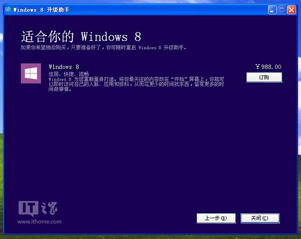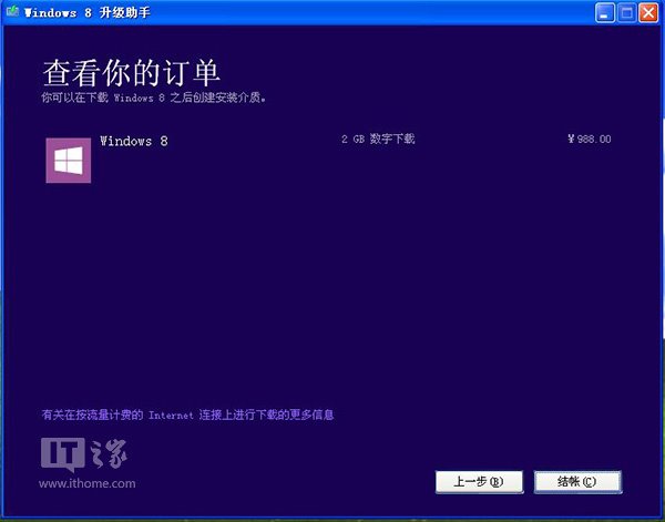 在該頁(yè)面下,可供用戶(hù)訂購(gòu)為Win8普通版,目前售價(jià)為998元,購(gòu)買(mǎi)成功后,需要在線下載2G的升級(jí)安裝包。