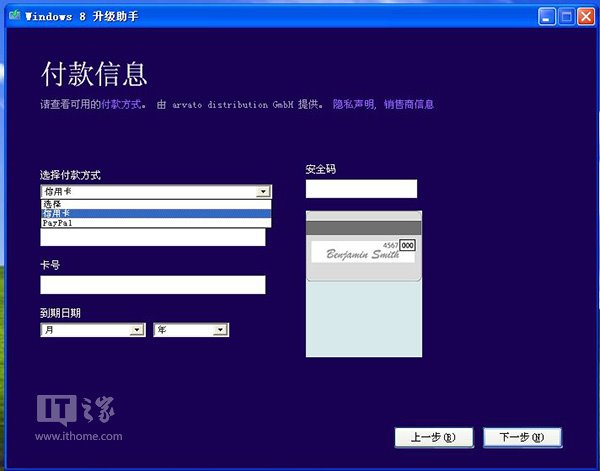 ▲目前Windows8升級(jí)助手支持信用卡和國(guó)外PayPai付款方式,均不適合國(guó)內(nèi)用戶(hù)