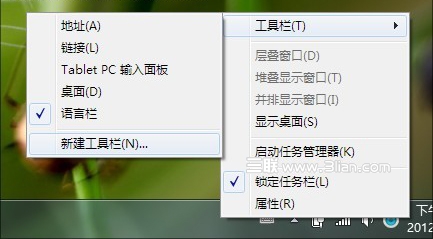 3.右擊Win7任務欄空白處,選擇“工具欄”→“新建工具欄”,然后定位到剛剛建立好的那個文件夾處。